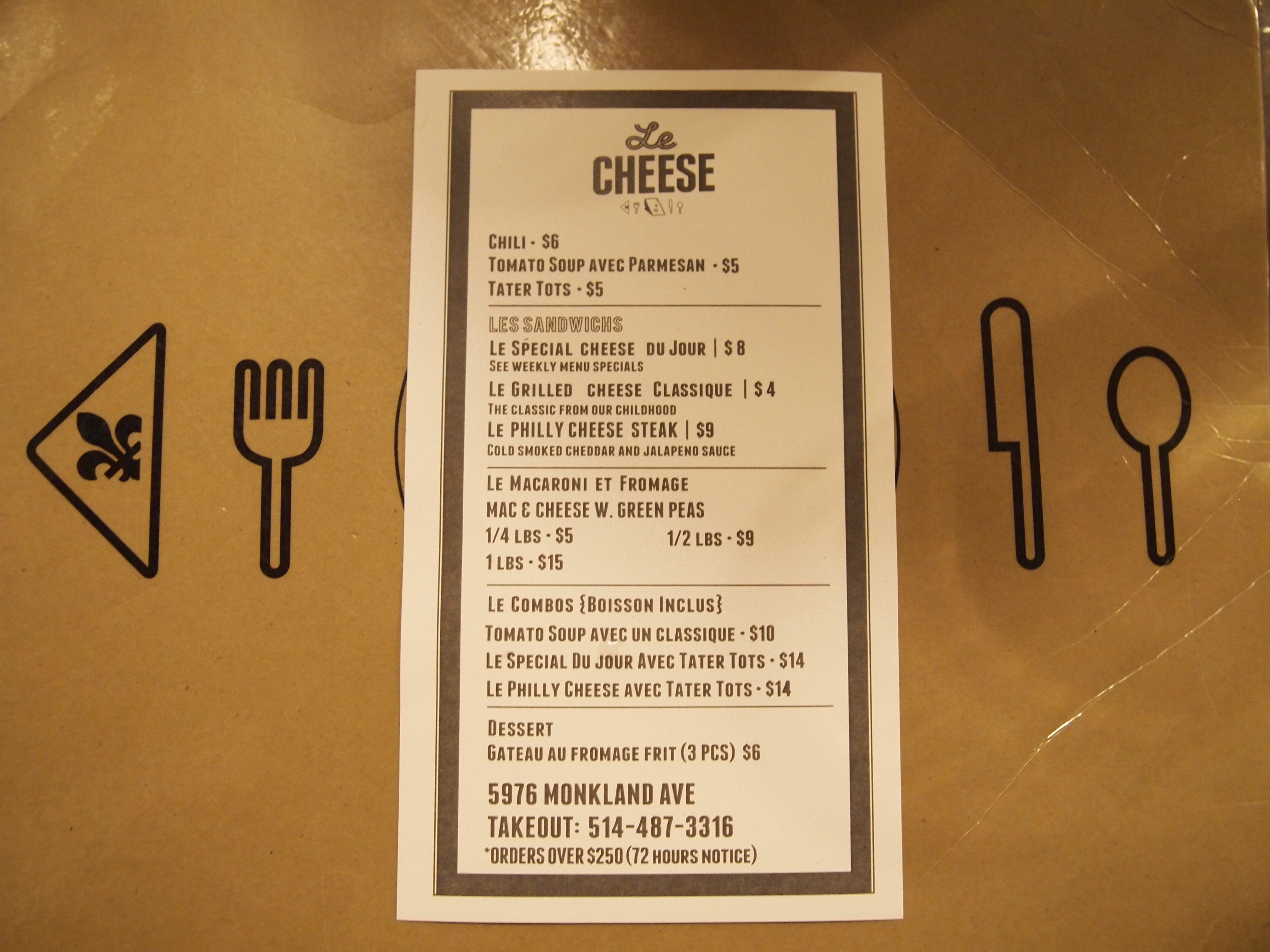 Yes, this is it! Le Cheese. It was on Mr.Butter’s wishlist for about 2 years now. We had tried to find their food truck, but never succeeded. The menu is simple and we easily ordered 80% of the menu.