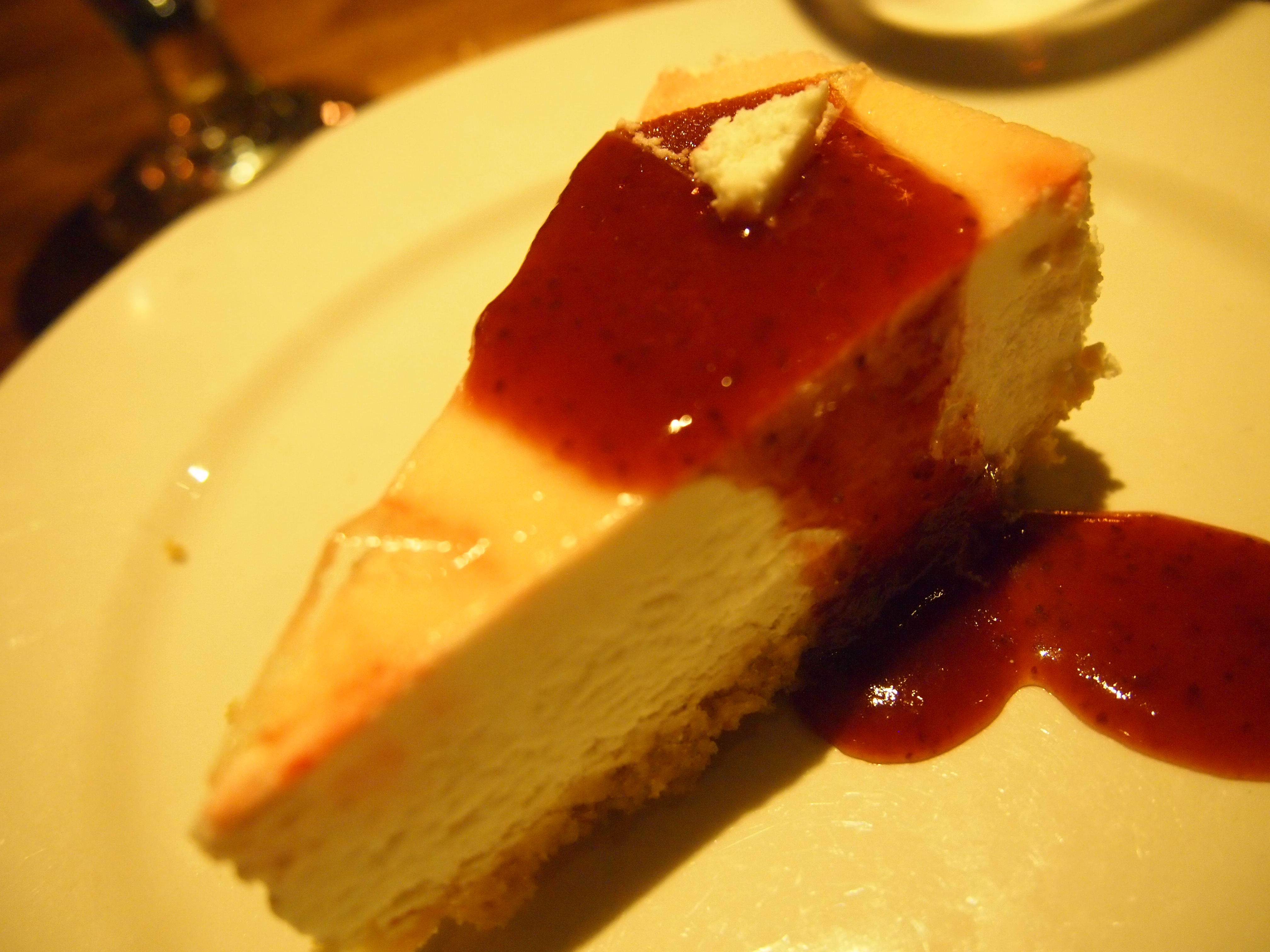 The cheesecake was not great either. It wasn’t dense. It had a light and mousse texture. This could pass as a cheesecake mousse cake more than the chocolate mousse cake. The coulis was good though.